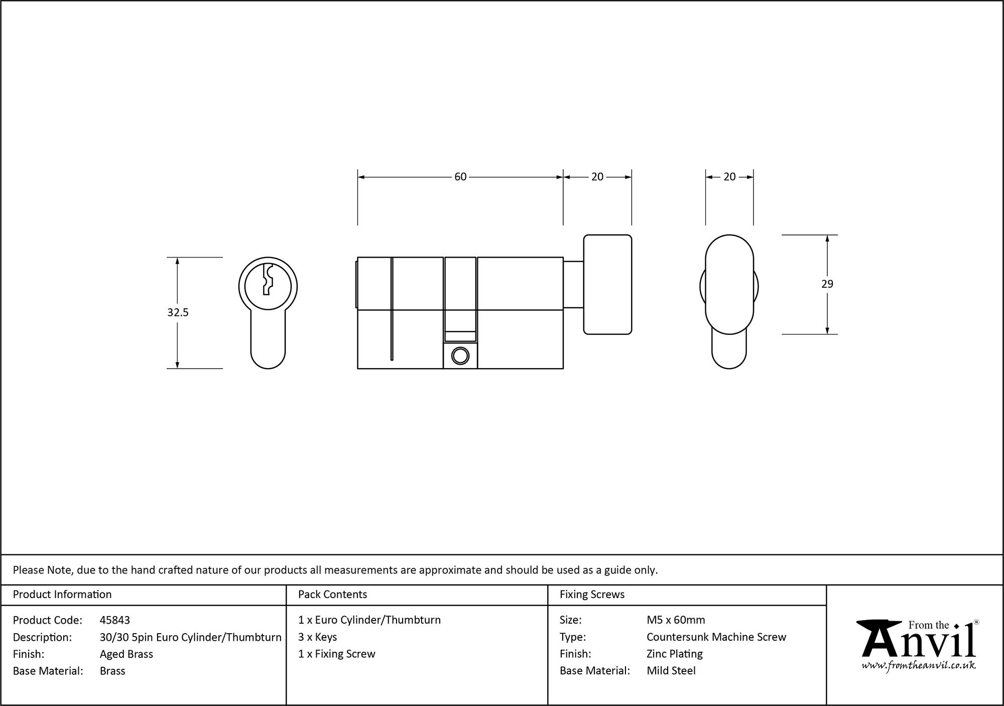 • Euro Cylinder/Thumbturn: 30/30