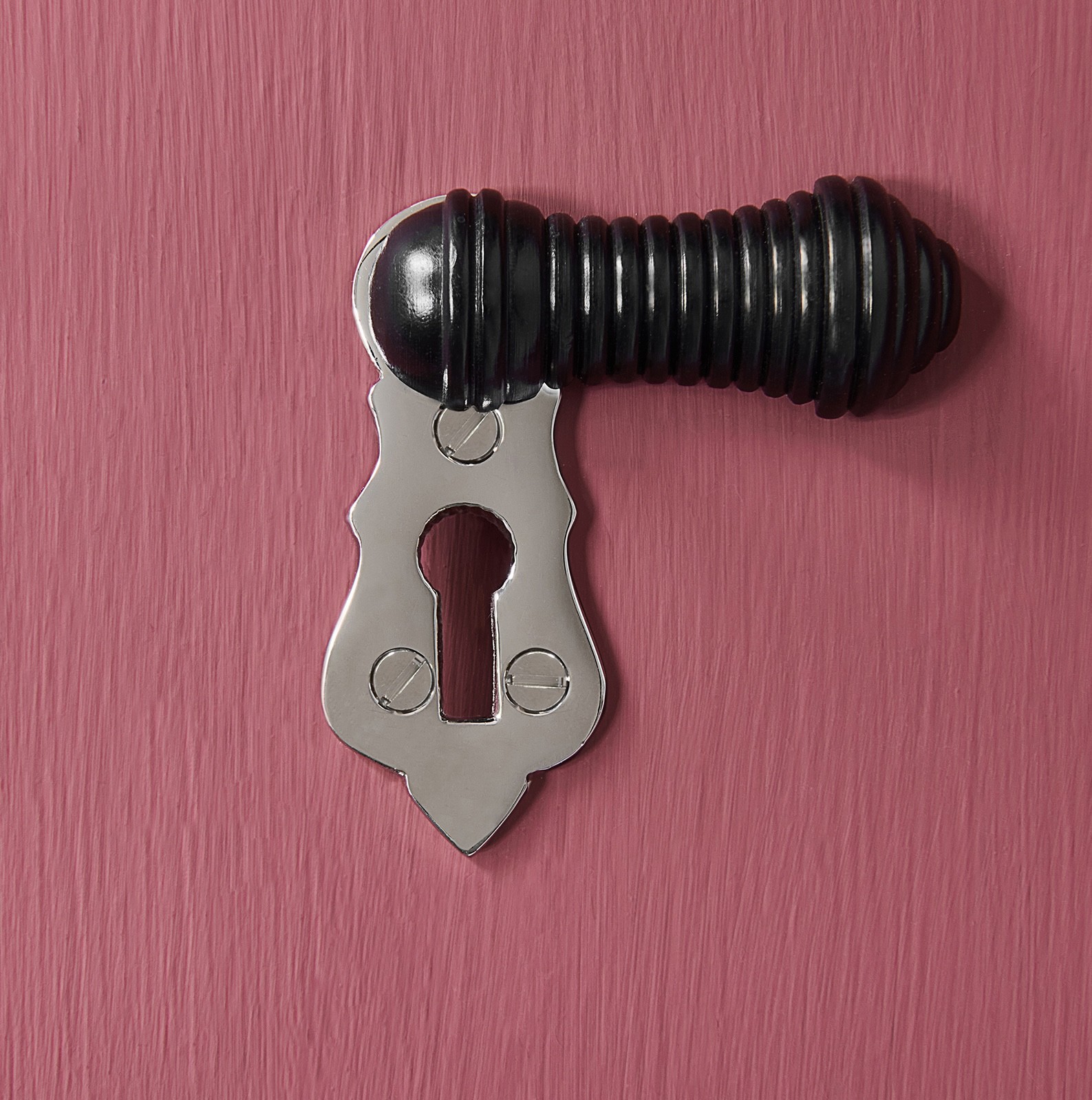 A solid ebony wood beehive-style escutcheon, authenticated by the Royal Botanical Gardens, Kew.  Fitted to a nickel-plated backplate.