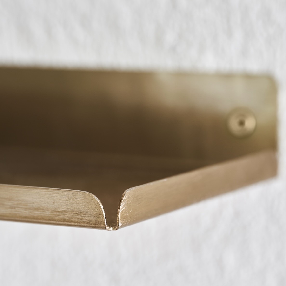 Our Brass Shelf provides functional and stylish storage solutions for your home. Use in your living room, hallway or bedroom to organise trinkets and décor. Crafted from iron, it has been given a golden brass finish and comes with a small ledge to frame your belongings and keep them from falling.