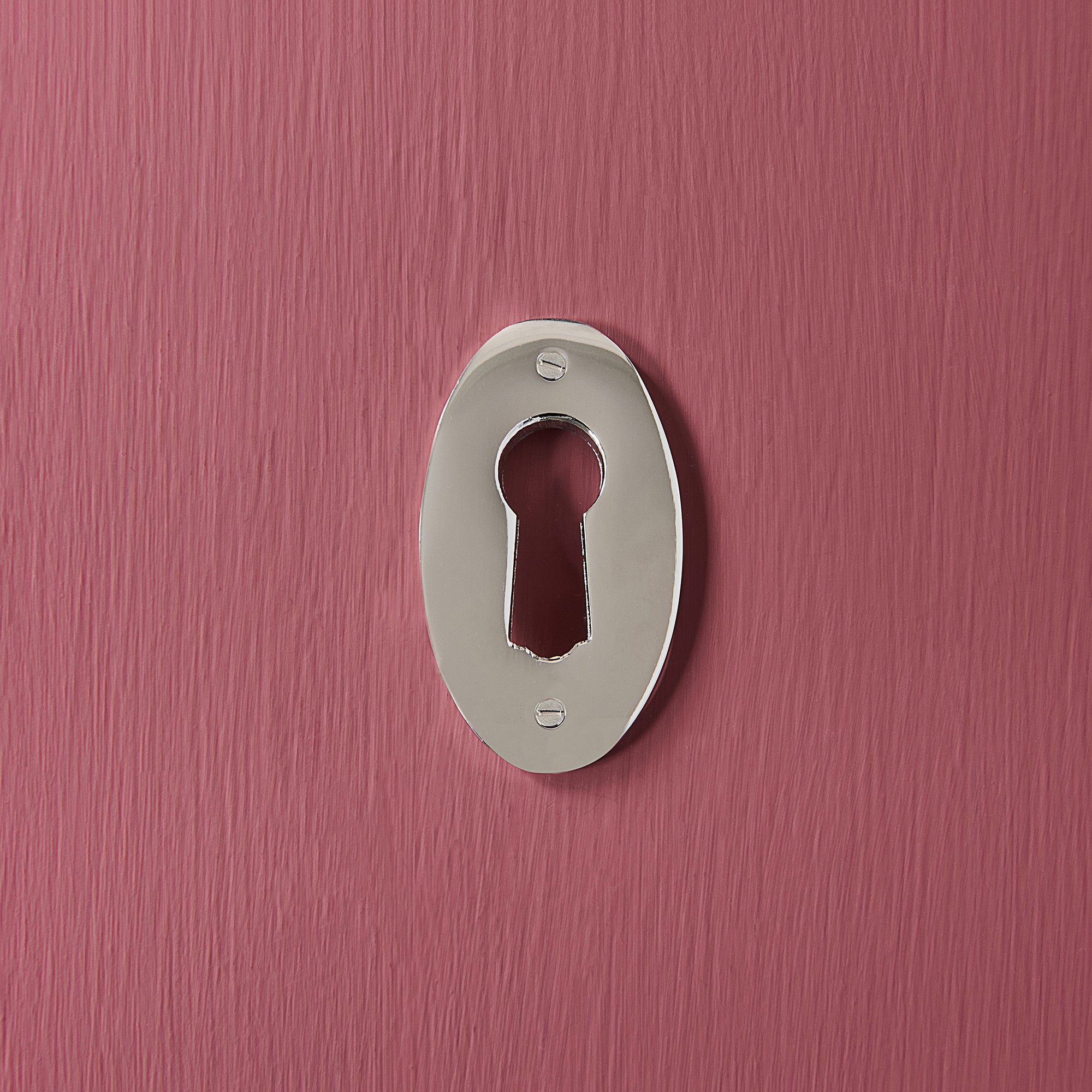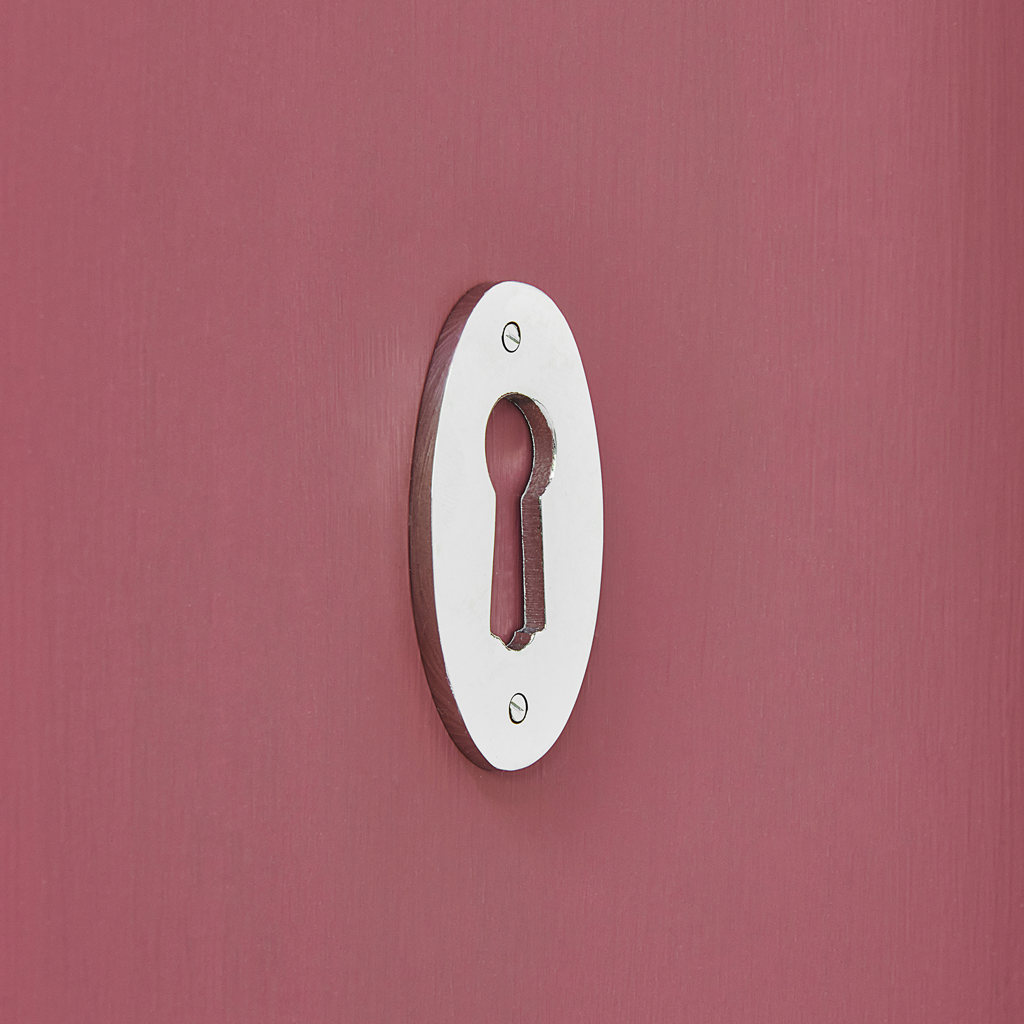 A simple Oval Escutcheon in Polished Nickel designed to offer protection to your door against damage from a key.