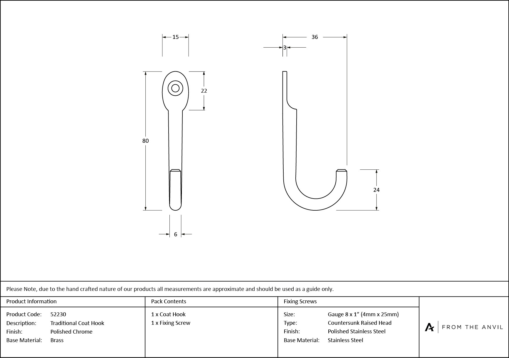 • Our traditional coat hook is forged from solid brass which emphasises the high quality materials and manufacturing techniques used. A perfect design choice with many matching products available.