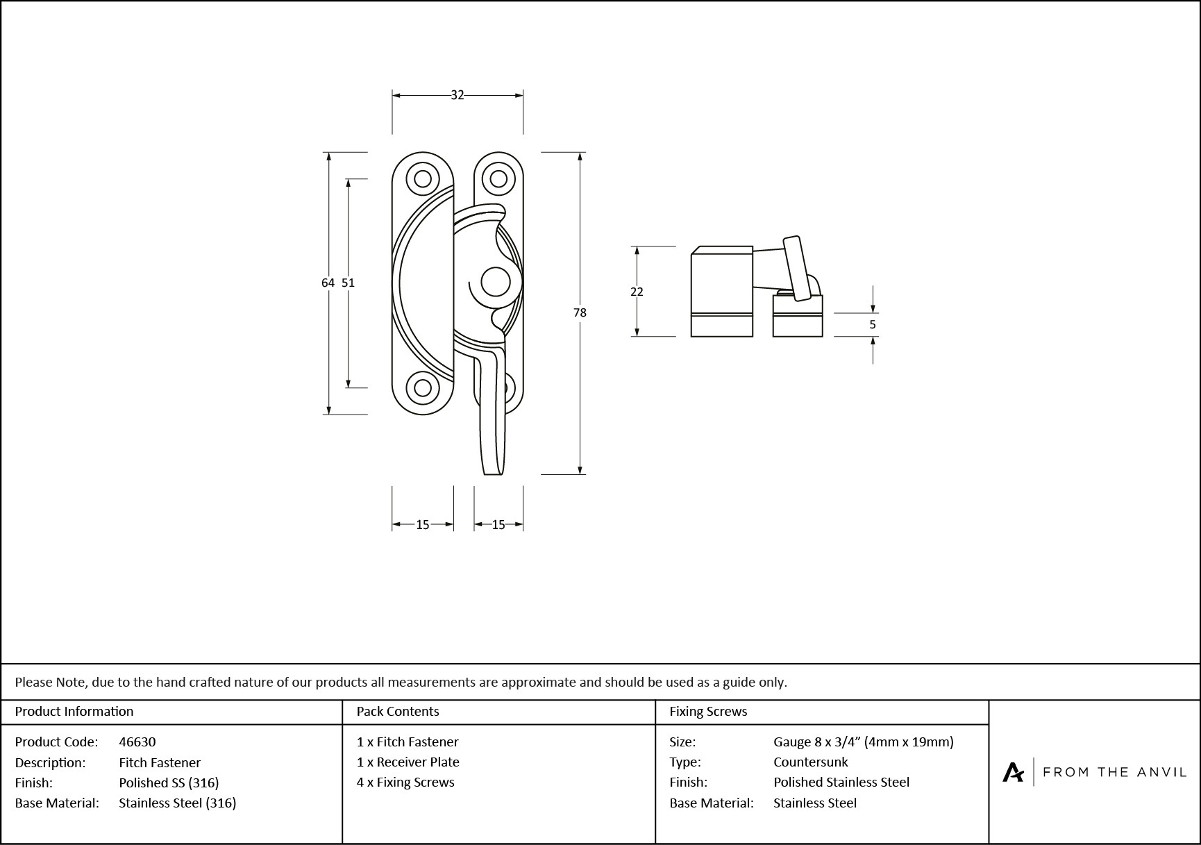 • Fixing plate: 64mm x 15mm