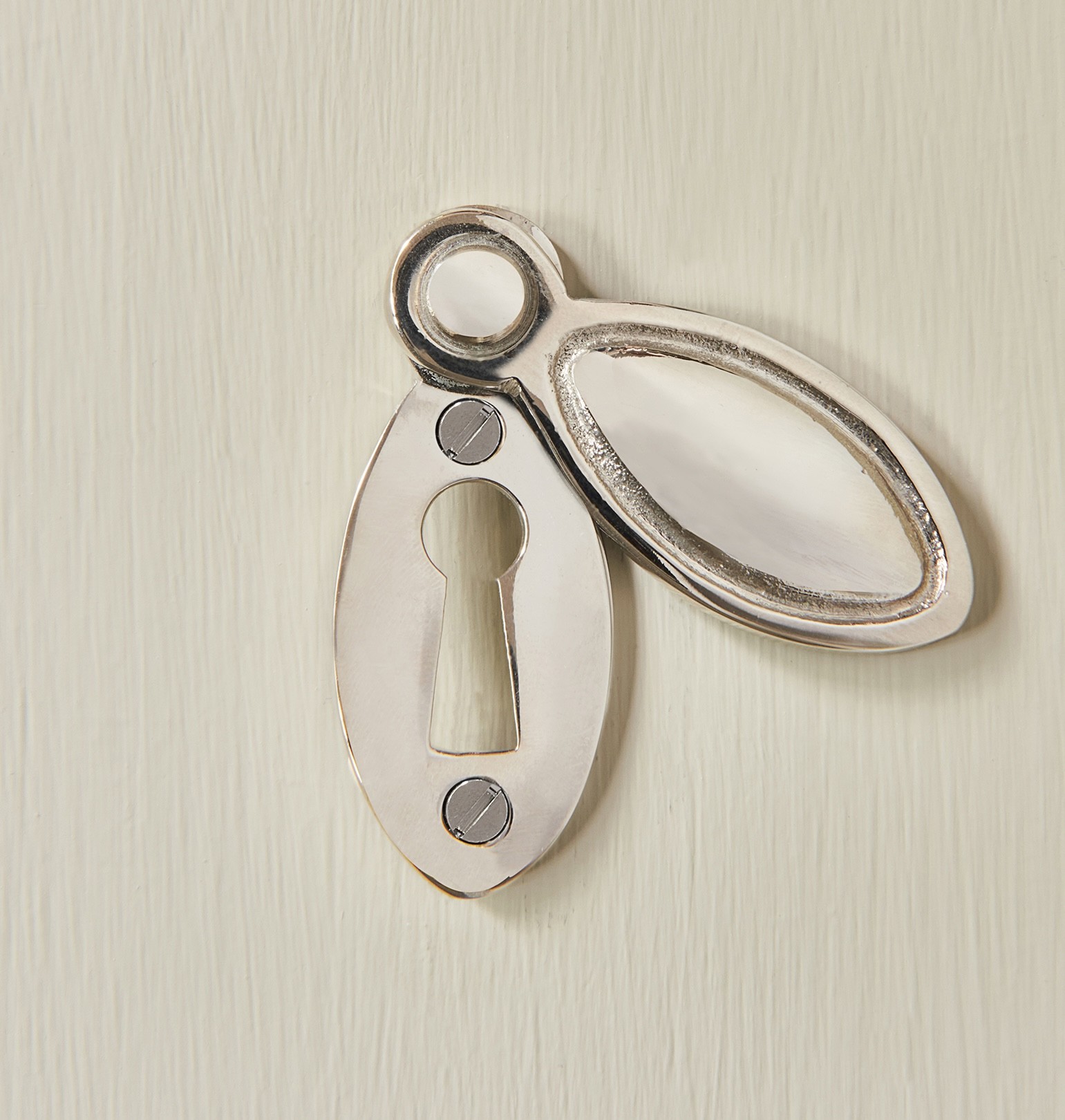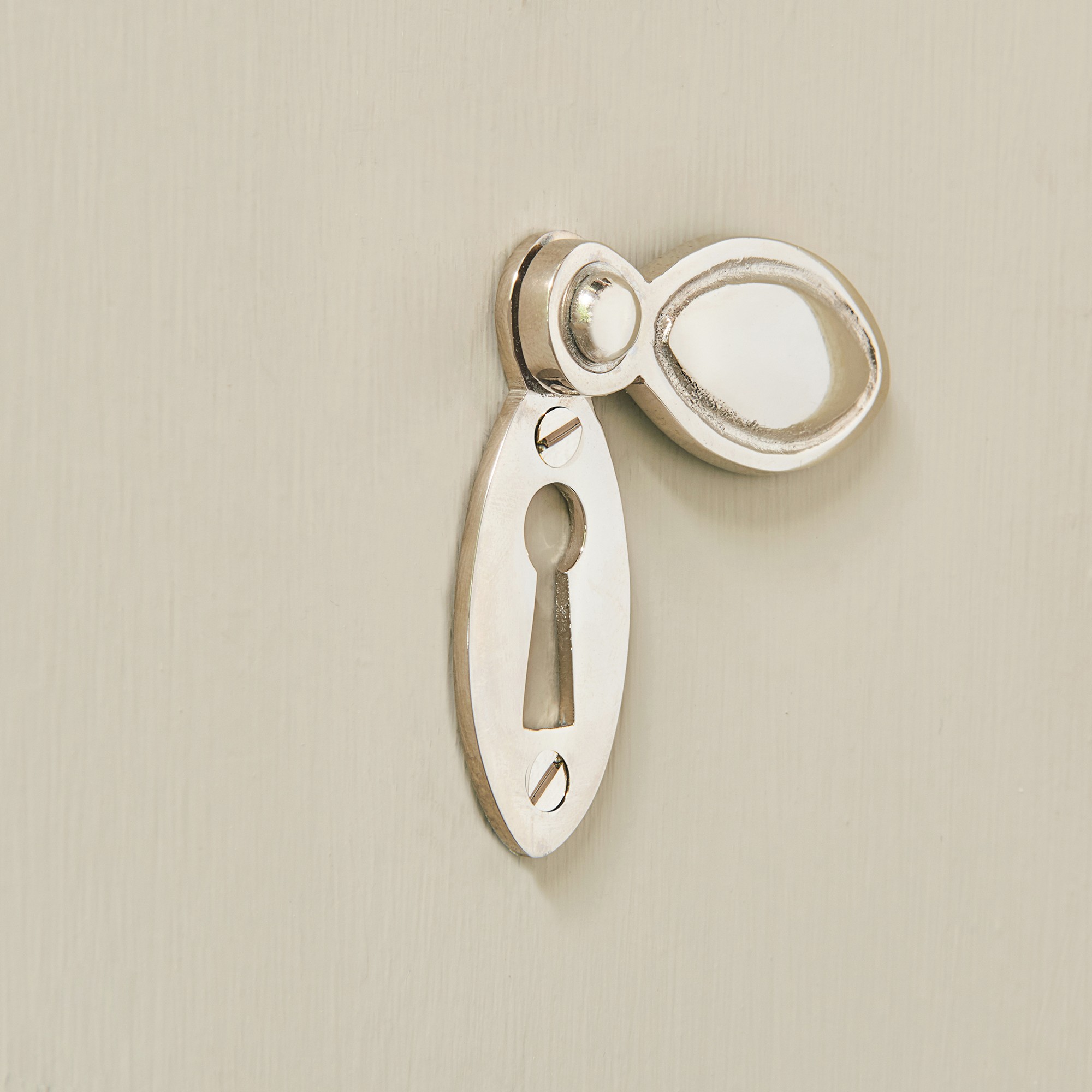 A solid, Regency styled escutcheon, made in the UK, and finished in polished nickel.