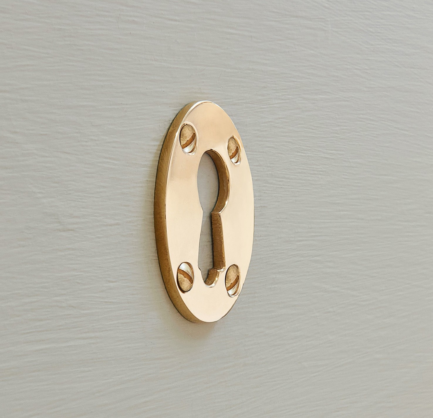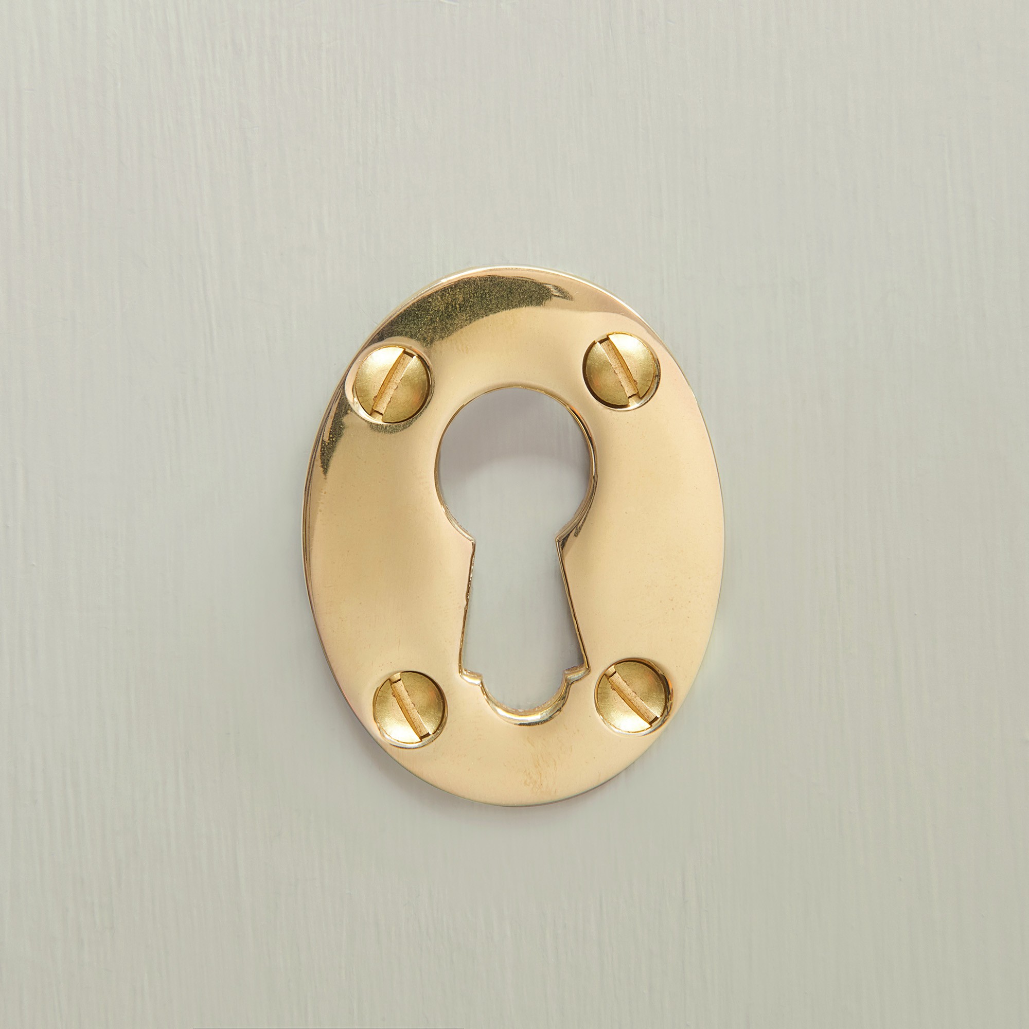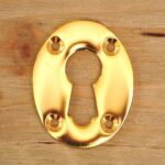 A stunning oval uncovered escutcheon, suitable for large rim lock keys.