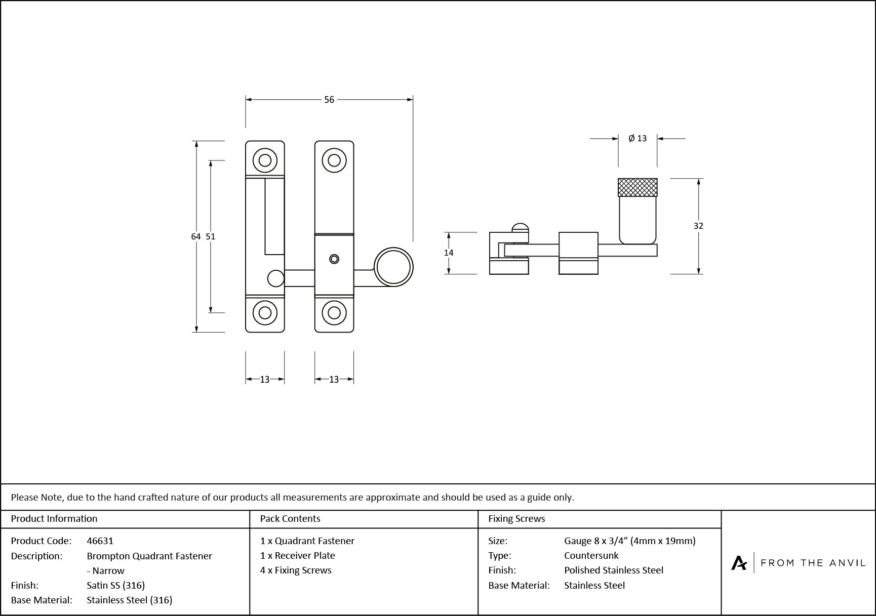 - Fixing Plate: 64mm x 13mm