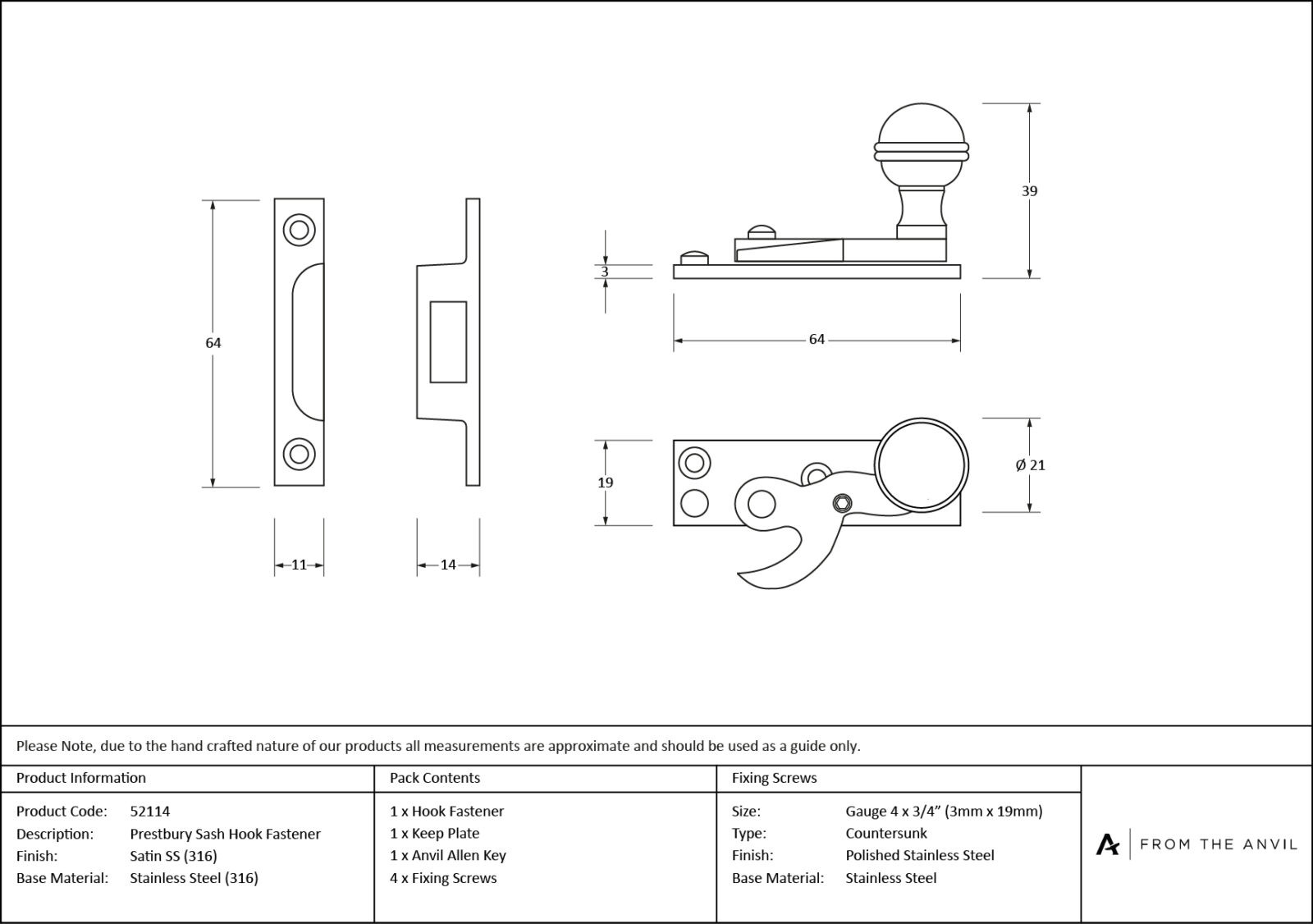 • Fixing plate: 64mm x 19mm