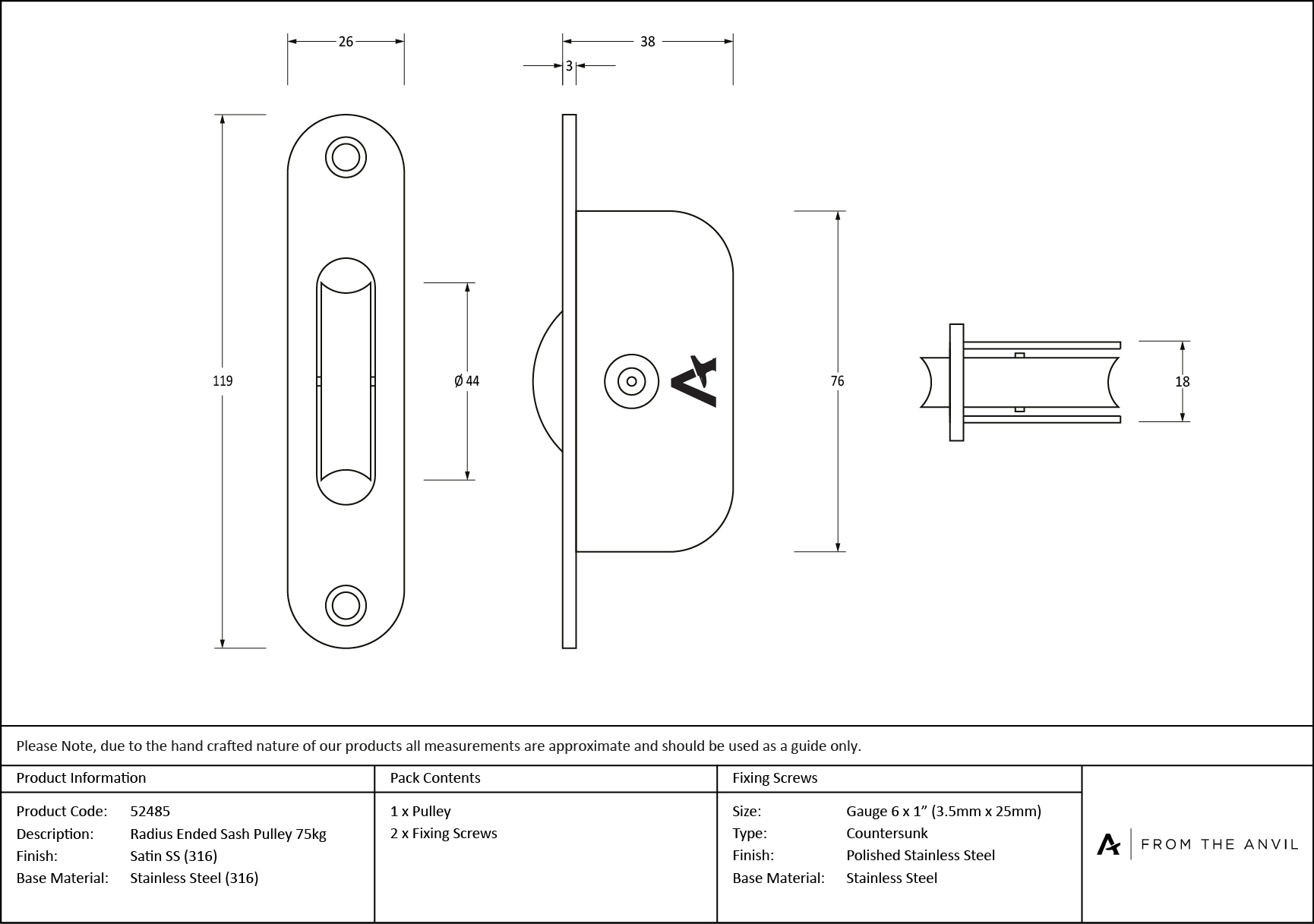 Satin Marine SS (316) Radiused Sash Pulley 75kg